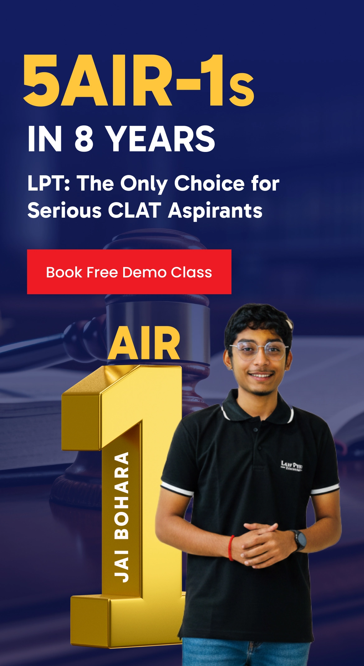 Law Prep Tutorial continues to lead with consistent top ranks, producing 5 All India Rank-1 achievers in CLAT 2017, 2019, 2021, 2022, and 2024.